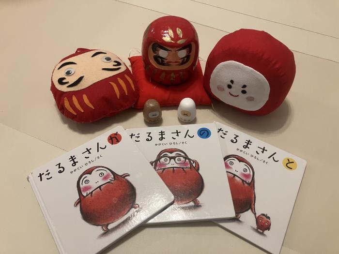 そもそも最初にだるまに興味を持ったきっかけは、YouTubeのだるまをモチーフにしたアニメーション動画で、軽快な音楽にあわせて一緒に踊って楽しんでいました。その様子を見てプレゼントした絵本の「だるまさん」シリーズ(かがくいひろし著・ブロンズ新社)は、お気に入りの絵本のひとつで何回も繰り返し読んでいます。