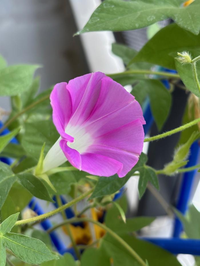最大のピンチは遠方にある夫婦双方の実家への帰省だった。ネットで自動給水器なるものを購入したが、事前に試してみたところ、数時間でボトルの水が空になり絶望した。これでは数日間の不在を耐えられない。どうしようもないので出発前にたっぷりと水やりをした。数日後、あきらめ半分で帰宅したところ、元気はないものの枯れておらず、朝顔の生命力に感心した。他にも、カイガラムシと思われる害虫が発生し、希釈した牛乳を吹きかけて、ひたすら手作業で駆除したこともあった。