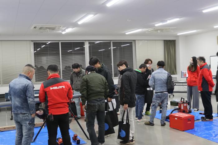 以前開催した意見交換会で上がった意見をもとに、工機ホールディングスジャパン株式会社、日本ヒルティ株式会社にご協力いただき体験型の勉強会を青年部会独自で開催しました。当日は参加者も多く、滞在時間も長い方がたくさんおられて盛り上がり、アンケート結果も満足度が高く非常に有意義な企画になりました。