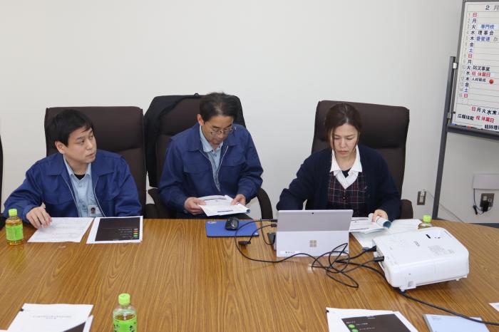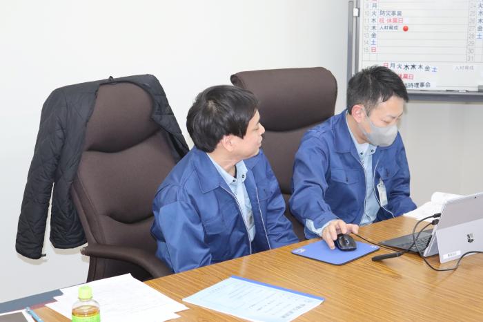 災害発生時に上下水道局、名水協、NAWSの3者で締結した「災害時における宅地内給排水設備の早期復旧に向けた協力に関する覚書」に基づき、組合職員が行う業務内容の確認やBiz安否確認システム、修繕受付システムの操作方法について机上の防災訓練を実施しました。