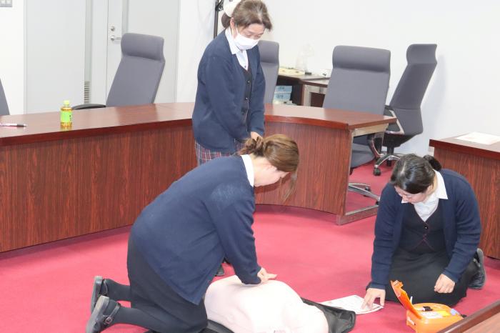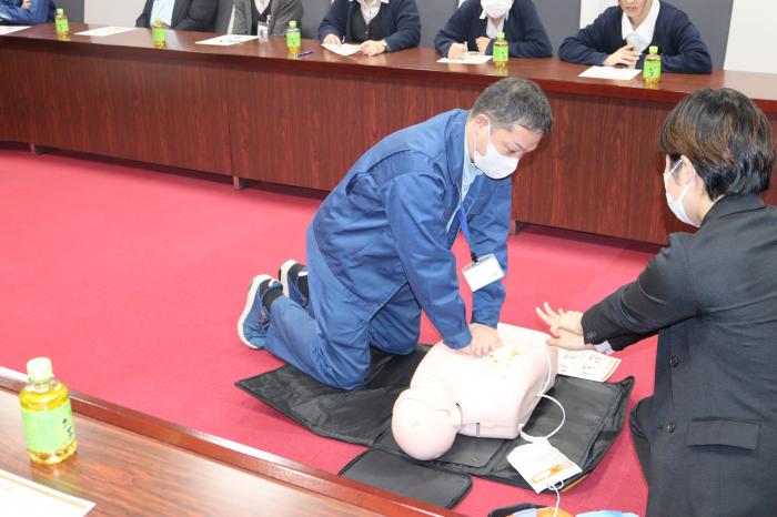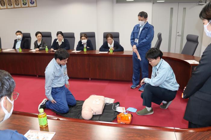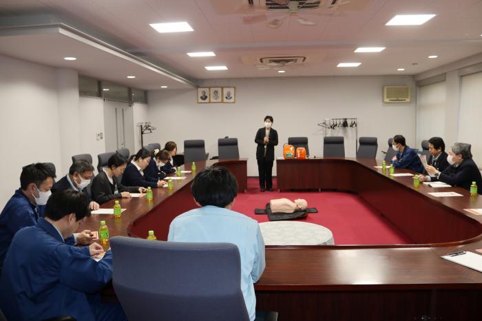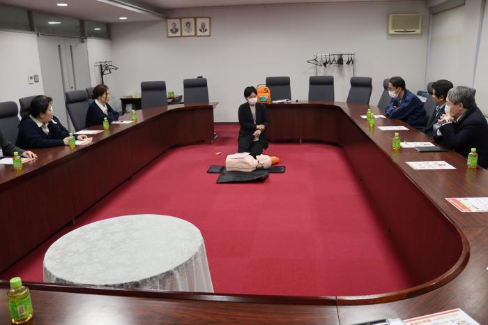 AEDの買い替えに伴い、今一度AEDの使用方法を確認するための組合職員を対象としたAED講習を日本光電工業㈱にお越しいただき実施しました。